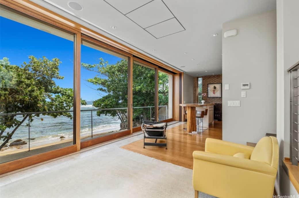 Designed by Long Architects, inspired by Japanese design elements and constructed to withstand the elements and the test of time. The tall floor to ceiling sliding doors invite the ocean views to be enjoyed throughout the home. On the main floor a 30 ft bank of glass doors slide into a pocket, opening up the entire kitchen and living areas to the ocean breezes.